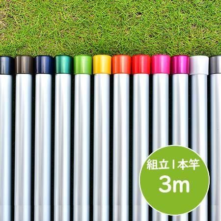 3mと長くても丈夫な 組立て式の1本物の物干し竿 サビない アルミ物干し 太さ32パイ×3mシルバ色 キャップの色が選べる 屋外 屋内 ベランダに最適