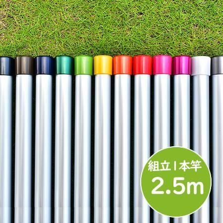 物干し竿 2.5mと長くても丈夫な 組立て式の1本物の物干し竿 サビない アルミ物干し 太さ32パイ×2.5mシルバ色 キャップの色が選べる 屋外 屋内 ベランダに最適
