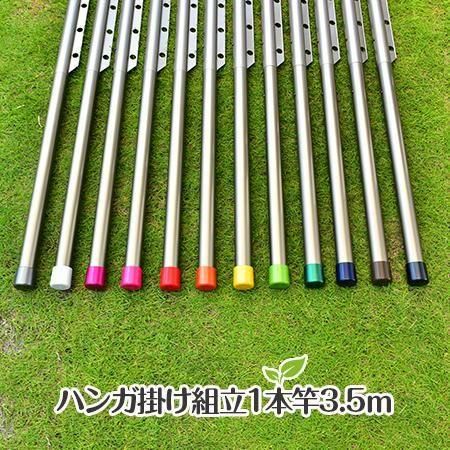物干し竿 3.5mと長くても丈夫な ハンガー掛け付き 組立て式の1本物の物干し竿 サビない 太さ32パイ×3.5mシャンパンゴールド色 キャップの色が選べる 屋外 屋内 ベランダに最適