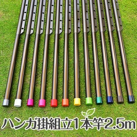 物干し竿 2.5mと長くても丈夫な ハンガー掛け付き 組立て式の1本物の物干し竿 サビない 太さ32パイ×2.5mブロンズ色 キャップの色が選べる 屋外 屋内 ベランダに最適