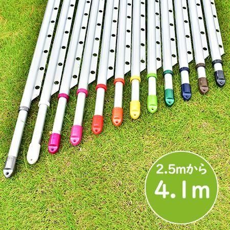 組み立て式 高剛性伸縮ハンガー竿 錆びない物干し竿 (長さ:2.5mから4.1mまで伸びる)シルバー色 ベランダ キャップの色が選べる
