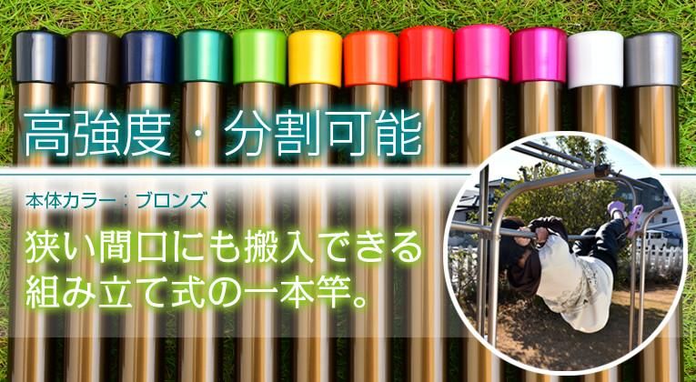 搬入しやすい組み立て式の一本竿。強度面も勿論クリア。