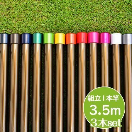 3本セット 組み立て1本竿 物干し竿 太さ32パイ×3.5mブロンズ色 3本 キャップの色