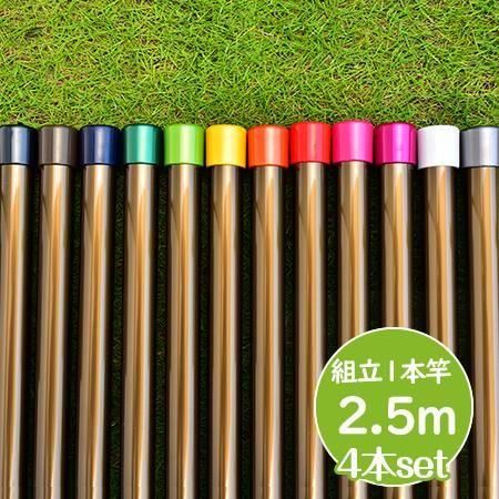物干し竿 2.5mと長くても丈夫な 組立て式の1本物の物干し竿 サビない アルミ物干し 太さ32パイ×2.5mブロンズ色 4本 キャップの色が選べる 屋外 屋内 ベランダに最適