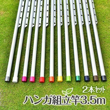 物干し竿 3.5mと長くても丈夫な ハンガー掛け付き 組立て式の1本物の物干し竿 サビない 太さ32パイ×3.5mシルバ色 2本 キャップの色が選べる 屋外 屋内 ベランダに最適