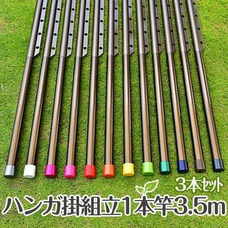 物干し竿 3.5mと長くても丈夫な ハンガー掛け付き 組立て式の1本物の物干し竿 サビない 太さ32パイ×3.5mブロンズ色 3本 キャップの色が選べる 屋外 屋内 ベランダに最適