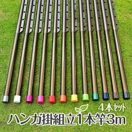 物干し竿 3mと長くても丈夫な ハンガー掛け付き 組立て式の1本物の物干し竿 サビない 太さ32パイ×3mブロンズ色 4本 キャップの色が選べる 屋外 屋内 ベランダに最適