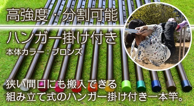 搬入しやすい組み立て式のハンガー掛け付き一本竿。強度面も勿論クリア。