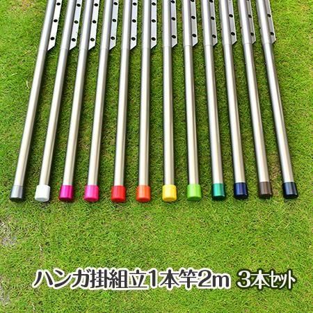 物干し竿 2mと長くても丈夫な ハンガー掛け付き 組立て式の1本物の物干し竿 サビない 太さ32パイ×2mシャンパンゴールド色 3本 キャップの色が選べる 屋外 屋内 ベランダに最適