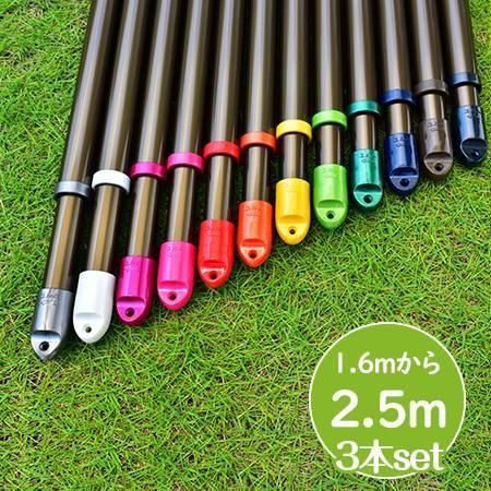 物干し竿 組み立て式 伸縮竿 物干し竿 (長さ:1.6mから2.5mまで伸びる)ブロンズ色 3本 キャップの色が選べる