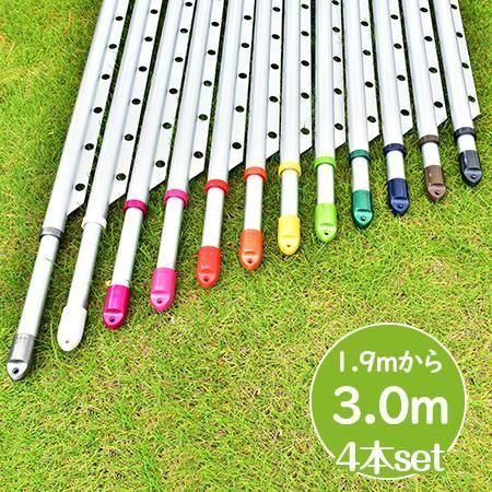 組み立て式 高剛性伸縮ハンガー竿 錆びない物干し竿 (長さ:1.9mから3.0mまで伸びる)シルバー色 4本 ベランダ キャップの色が選べる