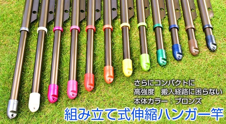 ●組み立てると今までの伸縮ハンガー竿より強い物干し竿になります。