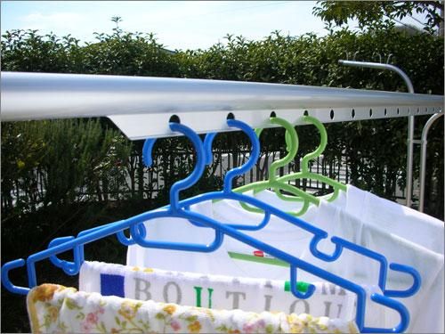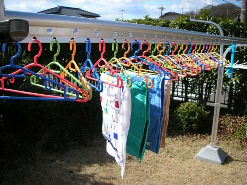 ここにハンガを掛ければ強風でも洗濯物が片方によったりしません。