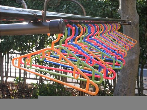 ハンガーを押さえるのに1個1個洗濯挟みで押さえていました。